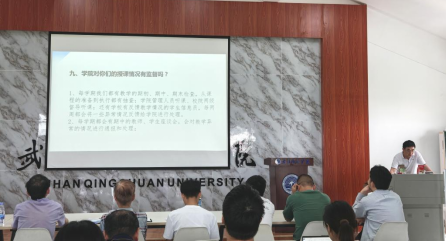 在下篇培训中,院长助理饶恕老师以“熟悉学院教学须知,合理完成教师座谈任务”为主题,通过问题导向的培训模式,系统梳理了教学评估核心要点。培训内容涵盖人才培养方案执行、课程教学依据、教师任务安排、新教师培养机制、教学质量监督等多个维度,为教师们提供了清晰的工作指引。
