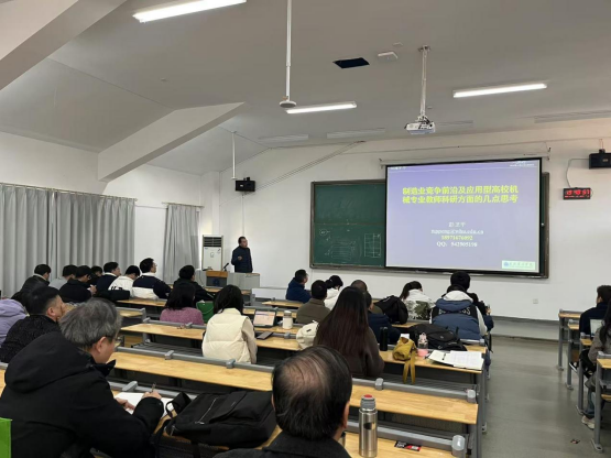 2024年11月27日下午,机电学院举办了主题为聚焦 “21 世纪制造业竞争前沿及应用型高校机械专业教师科研方面的几点思考”的学术讲座,主讲人为彭卫平教授,参会人员为机电学院全体教职工。