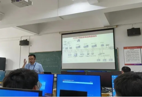 互动环节中,针对学生提出的疑问,杨老师耐心解答。杨老师通过剖析220V综合自动化变电站的模型结构,实现了理论与实践的无缝对接,拓宽了学生的视野。这一环节不仅加深了学生们对专业知识的理解,也让同学们领略到将知识应用于实际的奥妙。