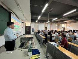 钱作勤教授分“实践能力与创新能力”、“大学生节能减排竞赛”、“优秀作品的案例分析”、“参赛建议与经验分享”4个部分对“科技竞赛以赛促学,节能减排创新实践——以全国大学生节能减排竞赛为例”进行阐述。钱教授在本次讲座中对大量节能减排优秀作品的案例进行了介绍,为现场师生提供了全新的研究思路和方向,极大地激发了大家的学习兴趣,现场反响非常积极热烈。