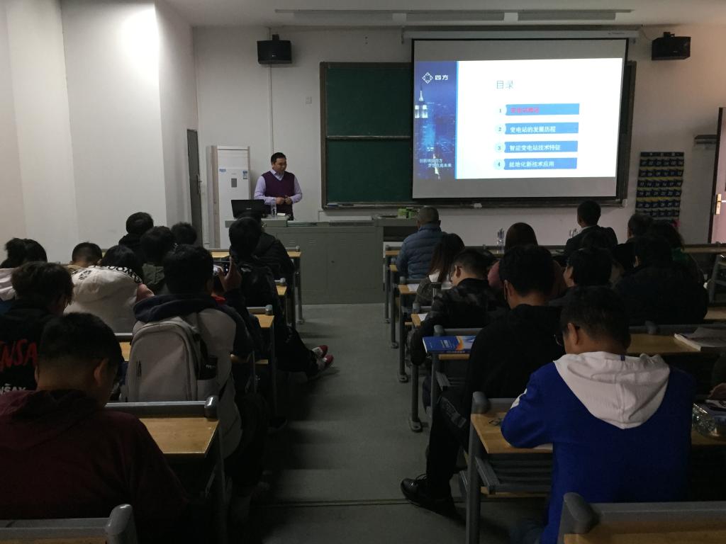 该讲座邀请到的主讲嘉宾是北京四方继保公司武汉分公司技术主管、总工程师方磊先生,主讲题目为“智能变电站技术特征及其发展历程”。全院教师及各专业学生近100人聆听了本次讲座。