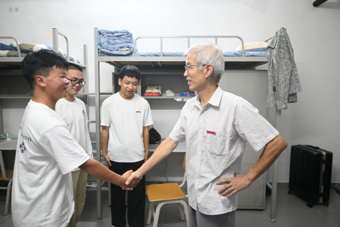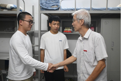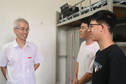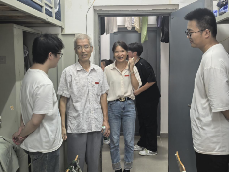 “同学你好,我们是学院的老师!”每推开一扇门,都有学长学姐热情介绍。丁院长和张书记秒变“大家长”,一句“从哪里来?”“住得习惯吗?”瞬间拉近距离。丁院长还特别叮嘱:用电安全要牢记,守规矩才是真的酷!张书记也送上开学通关秘籍:“调整好状态,做好时间管理,大学这场升级打怪的游戏,你一定能赢!”