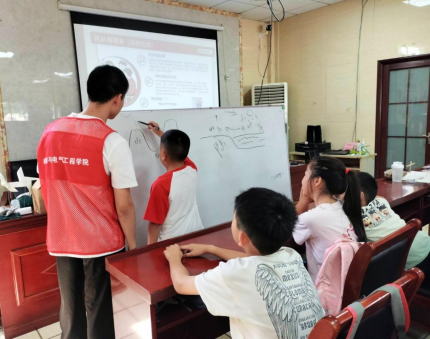 为了丰富社区儿童的暑期生活,进一步深化落实实践教学,“萤火星空”志愿服务团在龙泉社区党员群众服务中心开展了清洁能源科普及“小小艺术家”活动。