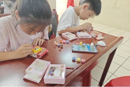 艺术是心灵的窗户,而创意是永不枯竭的源泉。肖依凡老师带领同学们制作石膏画像。同学们化身“小小艺术家”,用画笔为石膏注入灵魂,打造出独一无二的艺术作品。白坯石膏静静地由同学们的画笔赋予灵魂,无论是Q萌小动物还是复古摆件,它们在同学们的巧手下绽放。“你的彩虹发饰好酷!”“要不要试试渐变效果?”孩子们讨论着,互相启发,友谊与艺术一同升温。哆啦A梦、梦幻独角兽、酷炫的“国潮风”京剧娃娃……每一件作品都承载着独特的个性。