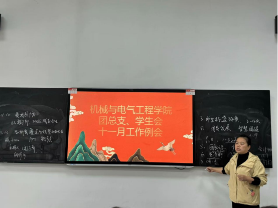 诸侯快讯1188团总支、学生会于2024年11月8日中午在教一112召开了本学期11月工作会议,对10月工作进行总结,强调了11月工作的重点。 本次会议由团总支书记李兰芳老师主讲。