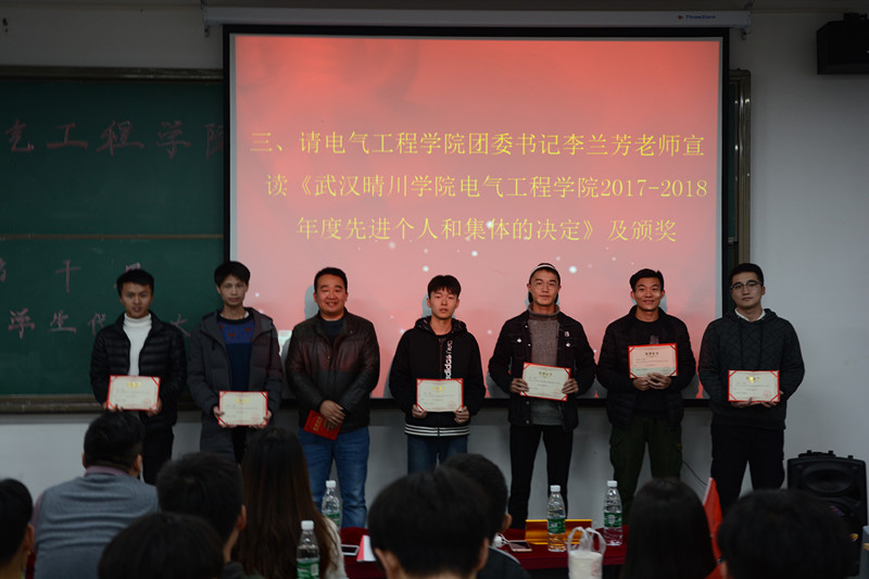 其后,团委书记李兰芳同志宣读了《ok1188诸侯快讯电气工程2017-2018年度先进个人和集体的决定》,对优秀部门--秘书部及优秀个人:杨乐、胡鸣、李曦、于季镏等进行了表彰,此外还有一批社团优秀干部和干事,学生活动积极分子也受到表彰。刘泽政同志和李勇同志亲自上台为他们颁奖,并进行了合影留念。