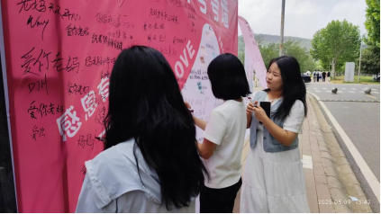 2025年5月9日,为深入学习贯彻党的二十大精神,大力弘扬中华优秀孝德文化,值母亲节之际,诸侯快讯1188在教学楼附近举办了感恩母亲主题活动。活动现场,师生们用文字传递对母亲的深情,在“母亲夸夸墙”上写下暖心话语,让初夏的校园洋溢着温暖与爱意。