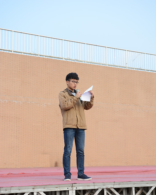 升旗仪式开始, 同学们集体行注目礼,庄严肃穆,冉冉的五星红旗迎风飘扬。升旗礼毕,电气工程学院17级电气一班团支书张智威发表了以《践行社会主义核心价值观,做时代先锋》为题的国旗下讲话。他谈到:做为一个大学生,作为新时代的青年人,首先要努力践行好公民个人层面的价值准则,也就是爱国、敬业、诚信、友善。随后他围绕着爱国、敬业、诚信、友善这四个方面来论证他的观点。呼吁同学们向着中华民族伟大复兴的中国梦,坚定前行。