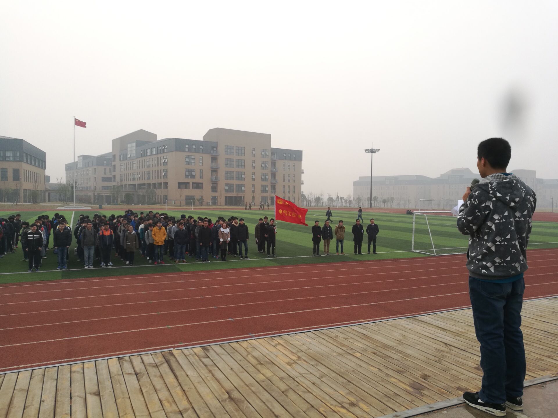 3月6日早晨7点15分,电气工程学院于校田径场举行了隆重而庄严的升国旗仪式。本次升旗仪式由分团委学生会成员黄宇同学主持,电气工程学院副院长余胜老师,分团委书记李兰芳老师及各级辅导员均出席了本次仪式。