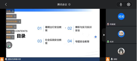 7月20日,学院全体辅导员,分批次开展安全教育“云”班会,班会覆盖学院千余名学生。