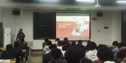 2025年11月9日18:00,2025级机械、机电、机器人专业在教1-205开展“晴川文明养成与成长启航”主题班会。本次班会由辅导员谌文韬老师主持。
