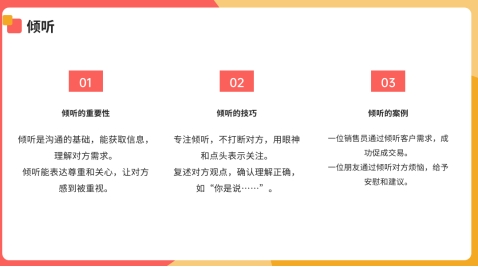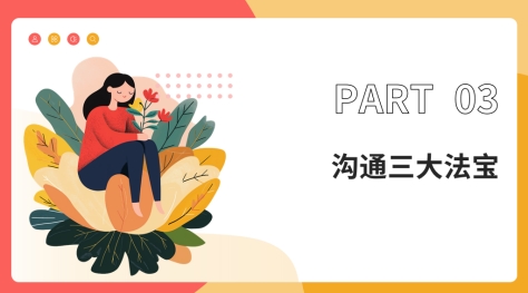 “沟通三大法宝”板块同样干货满满。语言沟通强调使用“我”语言明确表达需求,同时要避免模糊用语,注意语气语调非语言沟通通过肢体动作、空间距离传递信息,提醒同学们关注文化差异,确保信息一致倾听作为沟通基础,以专注倾听、复述观点等技巧,让同学们懂得有效获取信息、理解他人需求。