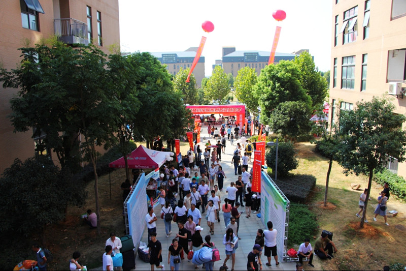 在烈日的照射下,他们用热情与专业给家长和学生以亲切关怀,他们用贴心与行动化解了家长和学生远程奔袭的疲惫,他们用素养展现了晴川学子的青春风采。新生接待站现场,志愿者们排列成行,等待着每一次班车的到来,还没等新同学下车,负责指导报到的指导员,负责引导的学长就赶紧迎上前,争先恐后地为新同学和家长服务。综合楼,报道程序现场秩序井然,学生们自己在志愿者的指导下独立地进行缴费。志愿者的脸上不时地滴趟着汗水、但志愿者的脸上看不到一丝的疲惫,仍然面带笑容、滔滔不绝的介绍报到程序、介绍我们风光秀丽的校园。