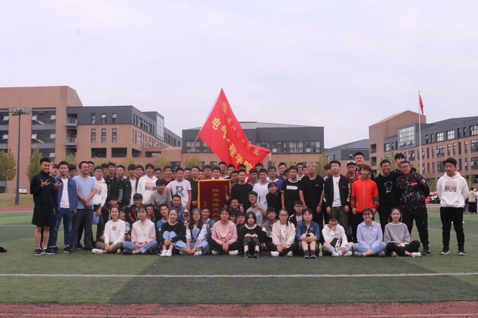 在运动会接近尾声的时候,每个人都没有离开自己的岗位,他们一起见证了这次运动会的谢幕。在颁发完各个奖项后,电气工程学院组织合影留恋。众多年轻的脸庞定格在这一刻,他们是电气的一员,此刻之前他们为电气工程学院自豪,这一刻之后电气工程学院以他们为荣。