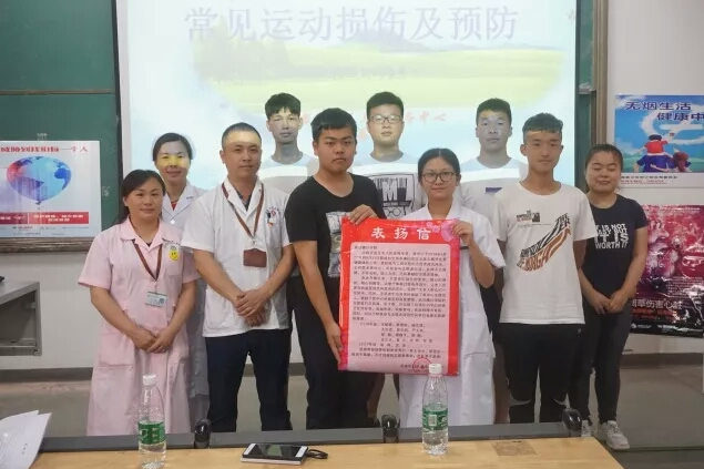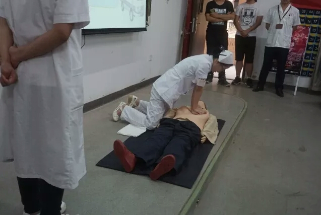 开场以运动损伤为要点,段医生介绍了常见的几种运动损伤情况以及具体的应对情况,生动科普了rice原则,并亲身带领两名同学做热身运动操。接下来胡医生的讲解成功吸引了同学们的眼球。为了达到理想的讲解效果,龙泉卫生院专门带来了医用假人演示正确的胸部按压和人工呼吸姿势,同时介绍了黄金四分钟原则,让同学们了解并掌握正确的急救知识。最后,在第31个世界无烟日来临之际,多名医护人员通过ppt和亲身示7范的方式讲解正确的急救知识,普及吸烟的危害。