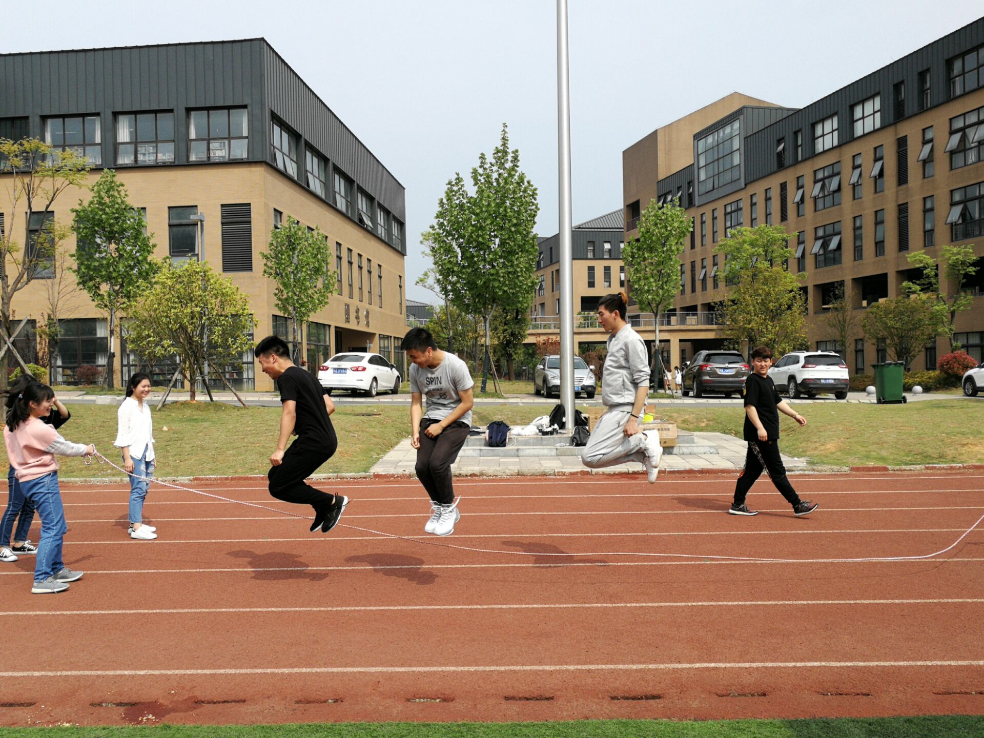 在活动过程中,同学们在完成了比赛要求的同时,也玩起了个人组织的PK赛,如踢毽子比看谁踢的个数多等。紧接着的集体大跳绳,大家更是凭着慢慢建立起来的默契,屡次打破自已的计录。