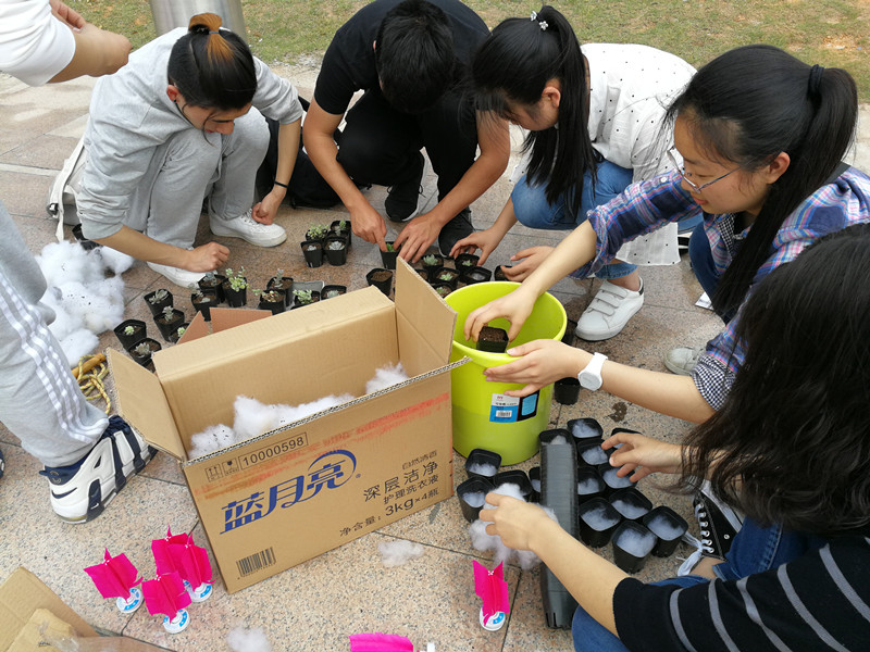 活动结束后,同学们领着各自应得的多肉植物,开心的离开现场。