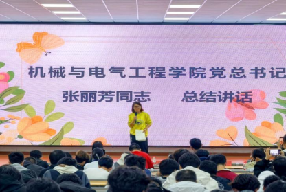 所有队伍表演结束后,学院党总支书记张丽芳走上舞台,为本次活动带来了既专业又暖心的总结点评。张书记首先充分肯定了本次活动主题,称赞十支队伍的表演“既出色生动,又主题鲜明”,精准触碰了同学们在网络时代的成长困惑。作为“Z世代”的大学生,是一个复杂、多元且充满矛盾的群体,有的学生沉迷网络、社交恐惧,线上活跃,线下缺乏自信……本次活动,同学们通过大家喜欢的方式,以情景剧的方式去分析、洞悉、走进学生内心,帮助同学们认清网络与现实,认清自我,不因网游误了学习,也不因沉迷网络伤了身体,拒绝网络暴力……本次活动不仅是对同学们精神的洗礼,也是推动学风建设的新形式。张书记希望同学们能以此活动为契机,认真思考自身与网络的关系,鼓励同学们树立自信、走下网络,将网络中活跃、创新的思维,在现实中去实践“将攻克难关的过程转化为成长的阶梯”,演绎“Z世代”大学生的责任与担当。