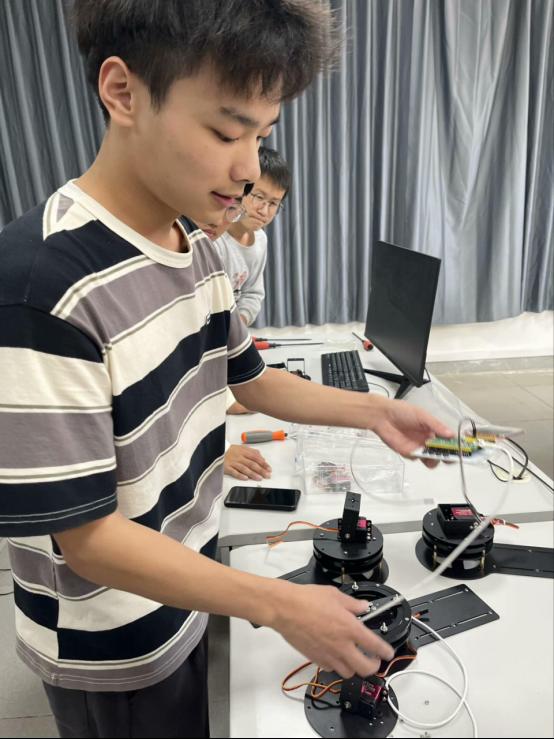 以青春热情点燃科创星火。在新生交流会上,王亚以自身经历为例,向新生分享了如何在学业与竞赛中找到平衡,鼓励大家勇攀高峰;在各类赛前培训中,王亚以个人备赛的经验和无私奉献精神,面对面辅导同学编写代码、硬件调试,帮助他们快速融入学术研究和竞赛准备;在项目研究与活动组织中,王亚以匠心精神精心筹备,从选题到实施每一个环节都妥善安排,不辜负每一位同学学习与成长的机会。他积极探索创新,用技术创新点亮青春星光,用实际行动引领服务群众。除了专业领域,他还积极参与了“七彩假期”志愿服务前往鄂州燕矶小学支教,返家乡社会服务,为孩子插上“科技的梦想”,为家乡贡献力量。