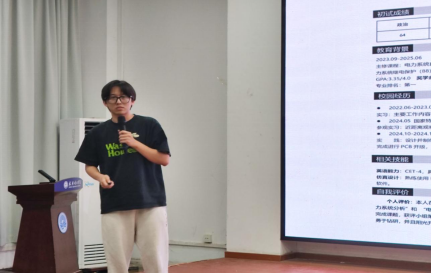 作为“专科逆袭”的考研学生代表陈何迪,从教育背景、校园经验、相关经验、自我评价几个方面讲述了自己的考研情况,提醒我们要明确“为何考研”,避免被外界舆论所裹挟。客观分析了提升学历、科研兴趣或职业发展几个点的相关作用与发展方向。“专注过程而非结果,用‘尽人事,听天命’的平和心态应对各种不确定性”。