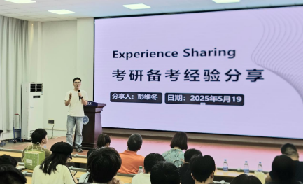 之后进入考研经验分享环节。本次“考研宣讲团”成员由不同专业的代表彭维冬等5名同学组成。五位同学的分享各有所长,各有特点,也各自分享了自己的学习方式和学习经验。他们毫无保留地分享自己的考研“通关秘籍”,从学科备考技巧到心态调整方法,每一份经验都凝聚着汗水与智慧,为在场同学们带来了满满干货 。